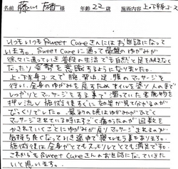 今までエステサロンには何度か足を運びましたが、これまで女の人をひきつけ満足させてくれるのはSweet Cureさんだけと感じました。